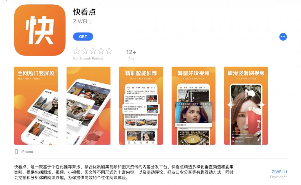 从App Store信息来看,快亮点是一款根据个性化引荐算法、聚合剧集/视频和图文资讯的内容分发渠道。该渠道供给包含剧场、视频、小视频、图文等不同方法的内容,供给翻滚谈论、老友口令共享等互动方法,是一款具有高效的个性化阅览体会App。
