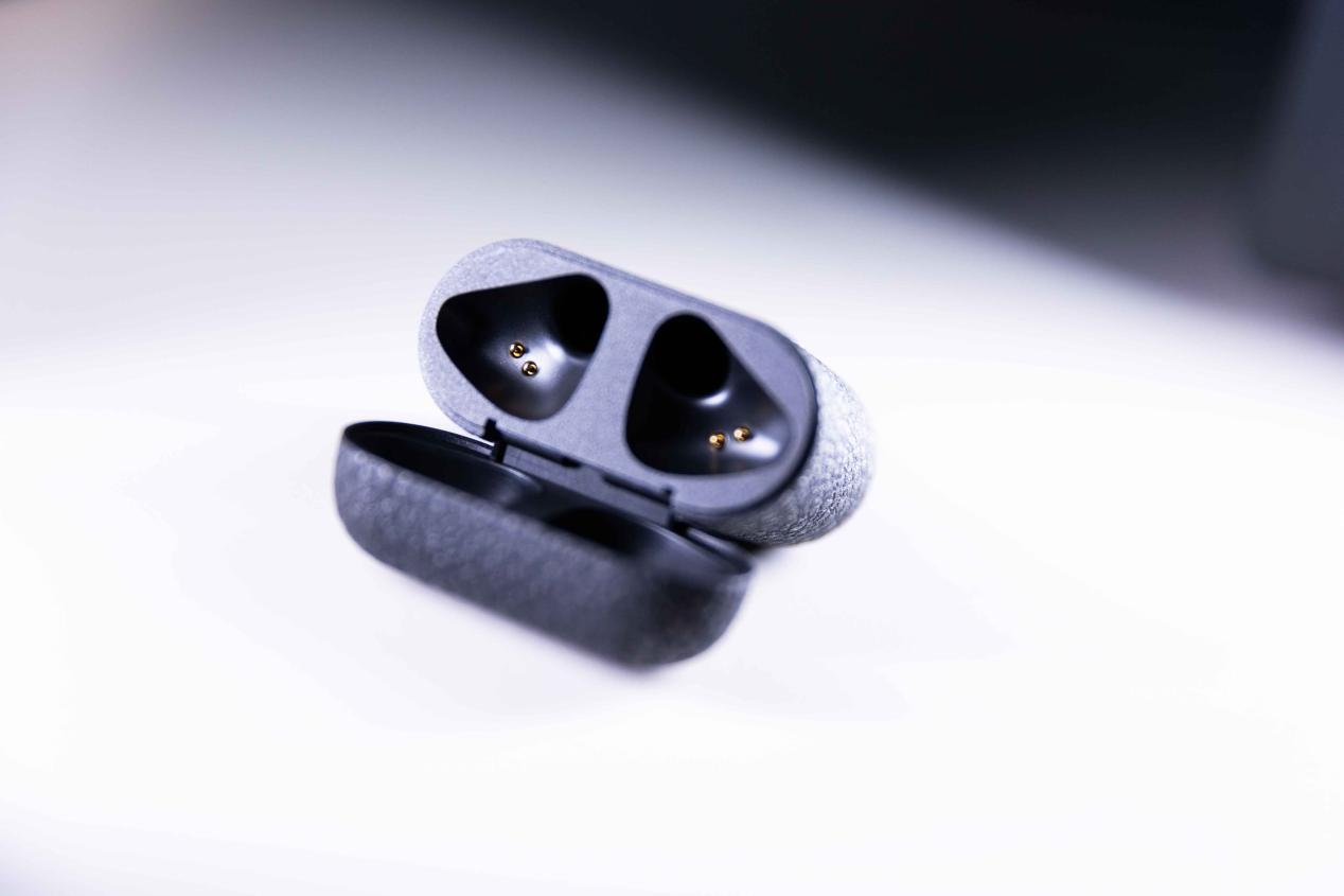 耳机本体位于的电池仓内部选用了磨砂黑的规划,其间与耳机接触的区域处理的更为润滑,在敞开电池仓时,能更为简便地将耳机本体取出。